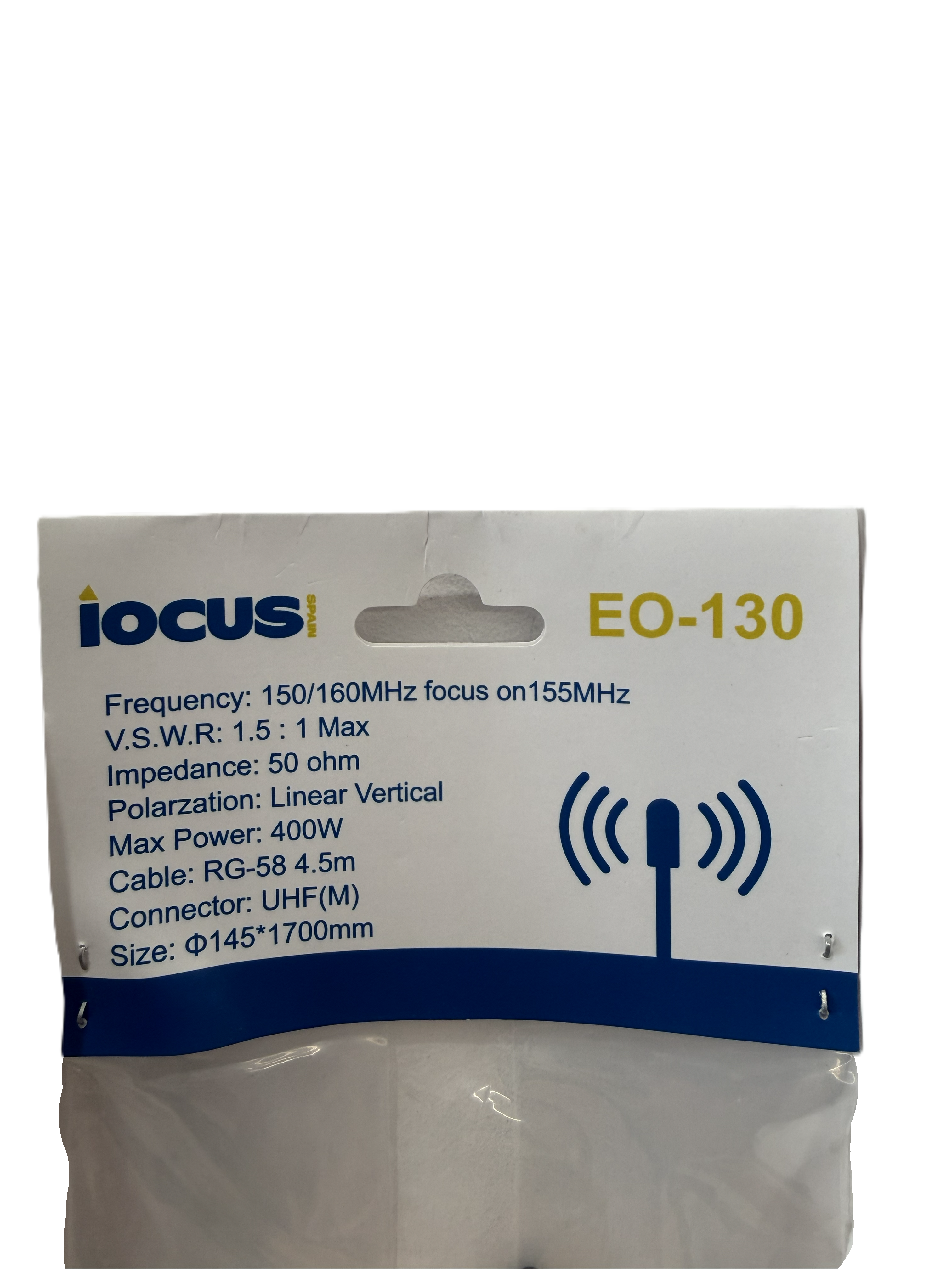 Antena de alta ganancia de 5/8 de onda (125 cm) con muelle flexible, diseñada para emisoras Astro y Alpha. Incluye 4,5 m de cable con conector PL y adaptador SMA macho. Ideal para vehículos: se fija al techo y triplica el alcance respecto a las antenas estándar.